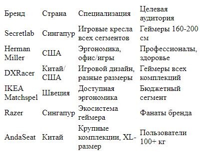 Ключевые бренды среднего сегмента — Secretlab (серия Titan), DXRacer (серия Master), AutoFull. Эти производители прошли путь от чисто эстетических изделий к функциональным эргономичным решениям благодаря давлению со стороны пользователей и ортопедических сообществ.
